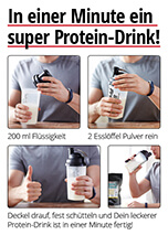 Das "Turbo-Sport-Protein" schmeckt lecker sahnig. Du kannst es pur trinken oder mit allen möglichen Zutaten viele verschiedene Drinks mixen.
